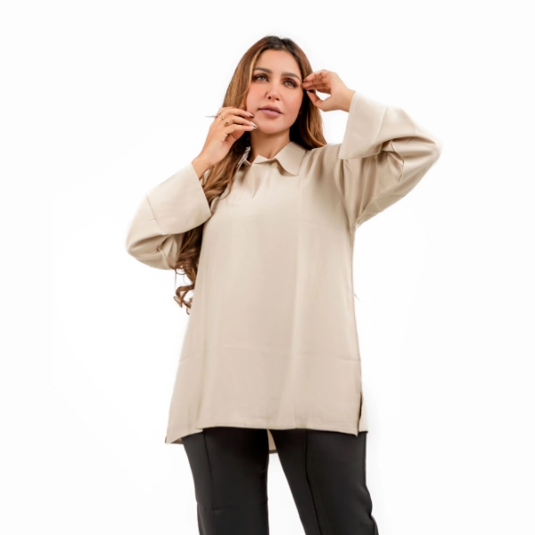 أضيفي لمسة من الأناقة العصرية إلى خزانتك مع هذه البلوزة القطنية المحتشمة بتصميم واسع ومريح. تتميز بياقة كلاسيكية أنيقة وأكمام طويلة بقصة فضفاضة تناسب جميع الأذواق والمناسبات، سواء للإطلالات الكاجوال أو الرسمية.