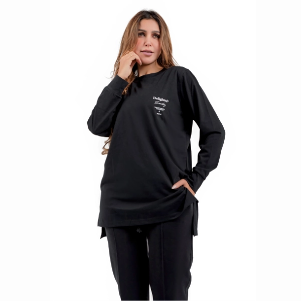 • التصميم: تيشيرت بكم طويل مع طباعة أنيقة