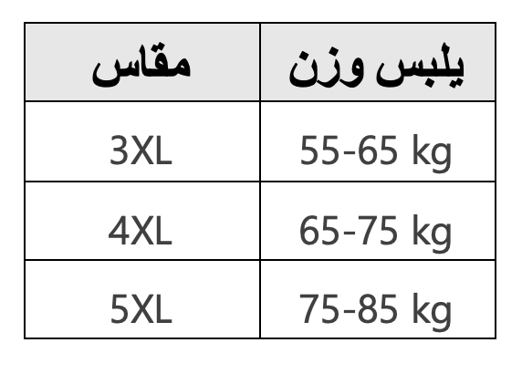 • المقاسات المتوفرة: L – XL – 2XL- 3XL -4XL -5XL