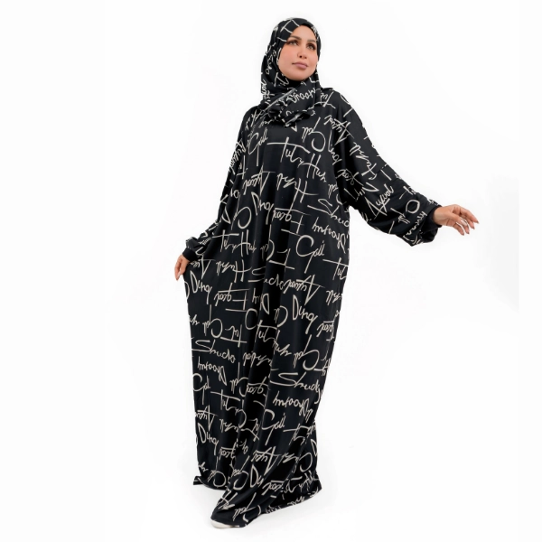 ✨ استمتعي بأجواء روحانية مع اسدال صلاة أنيق ومريح! مصنوع من خامات عالية الجودة تمنحك إحساسًا بالراحة أثناء الصلاة، مع تصميم واسع يوفر سهولة في الحركة، ونقوش مطبوعة تضيف لمسة من الجمال.