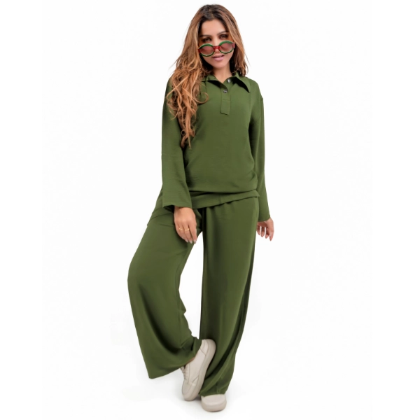 · النوع: طقم كم (تيشرت كم لياقة و زرائر + بنطلون) من قماشة عصرية.