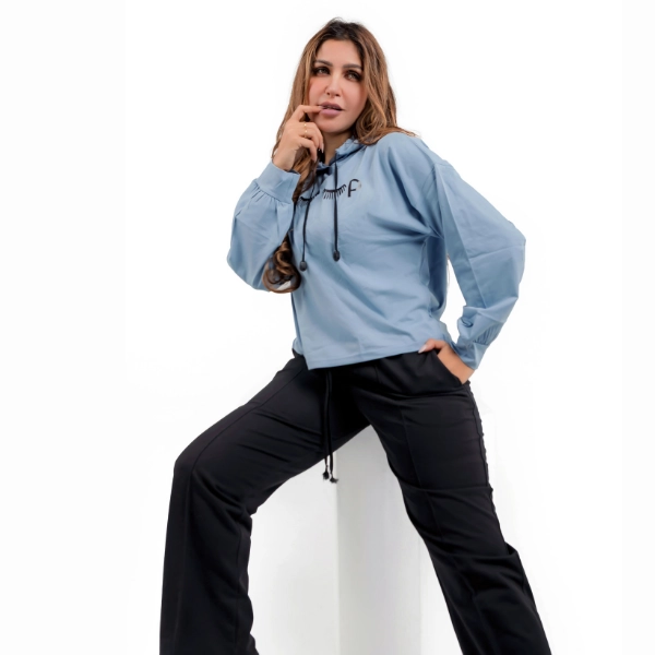 · النوع: تيشرت بكم و كابتشو مطبوع بخصر عالي (تصميم شبابي عصري